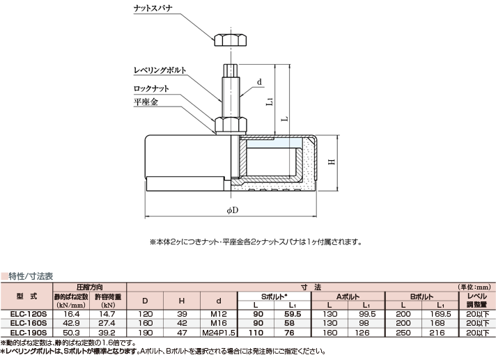 - 設置後にレベリングボルトを締め込むだけで、容易にレベルが調整可能です。