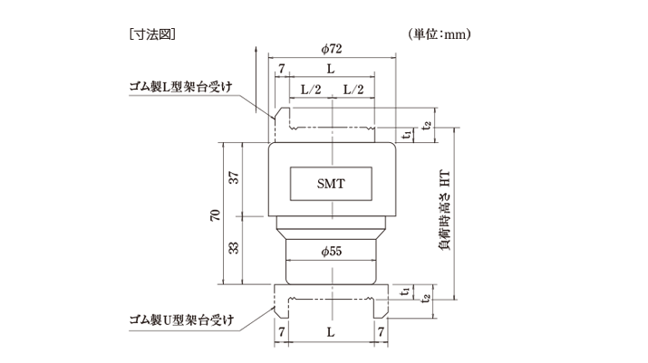 - L型、U型架台受けは上下架台の形鋼の種類やサイズにより適宜組合せて使用します。SMT型本体とは着脱自在ですので自由に選定できます。